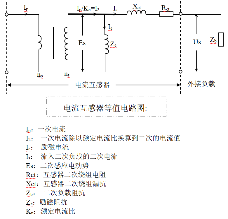 励磁阻抗Ze不是一个恒定不变的常数,但在相同的感应电动势下Ze是确定不变的,因此我们可以通过测量励磁特性曲线来得到Es和Ie关系。通过计算可得到CT在各种运行状态下的复合误差。