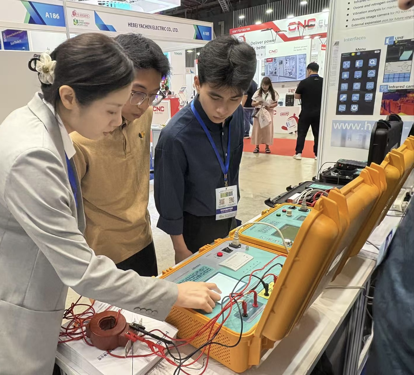 汉迪展会 2025年7月16日-18日,我司参加了位于越南胡志明市的2025年第18届越南国际电力设备与技术展览会。 发布者 handy 0 2025年7月16日-18日,我司参加了位于越南胡志明市的2025年第18届越南国际电力设备与技术展览会。展示的局部放电测试仪,互感器测试仪,高压开关测试仪及回路电阻测试仪吸引了众多参观者。