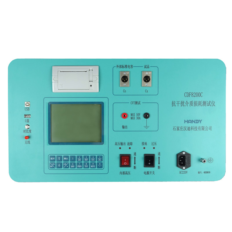 CDF8200C介质损耗测试仪适用于变压器、互感器、套管、电容器、绝缘油等电气设备介质损耗因数和电容量的测量工作。